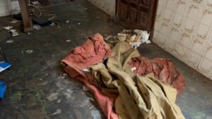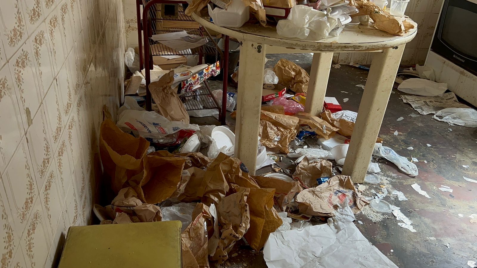 Em um dos quartos da residência, os policiais localizaram um homem de 52 anos, acamado, extremamente magro, com sinais evidentes de desnutrição e utilizando fralda suja. O ambiente era insalubre, com forte odor, restos de comida apodrecida, fraldas descartadas no chão e ausência de iluminação natural ou elétrica no cômodo.