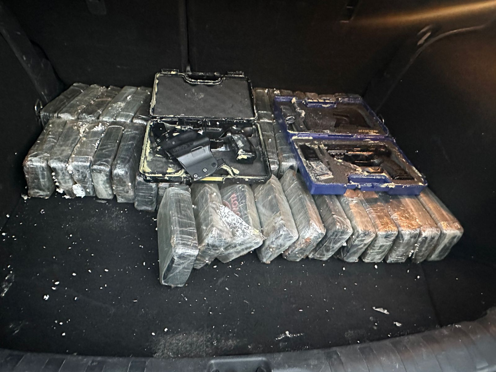 No interior do veículo, foram localizados 50 tijolos de pasta base de cocaína e duas pistolas. O suspeito iria levar a droga para a cidade de Jandira, na grande São Paulo.