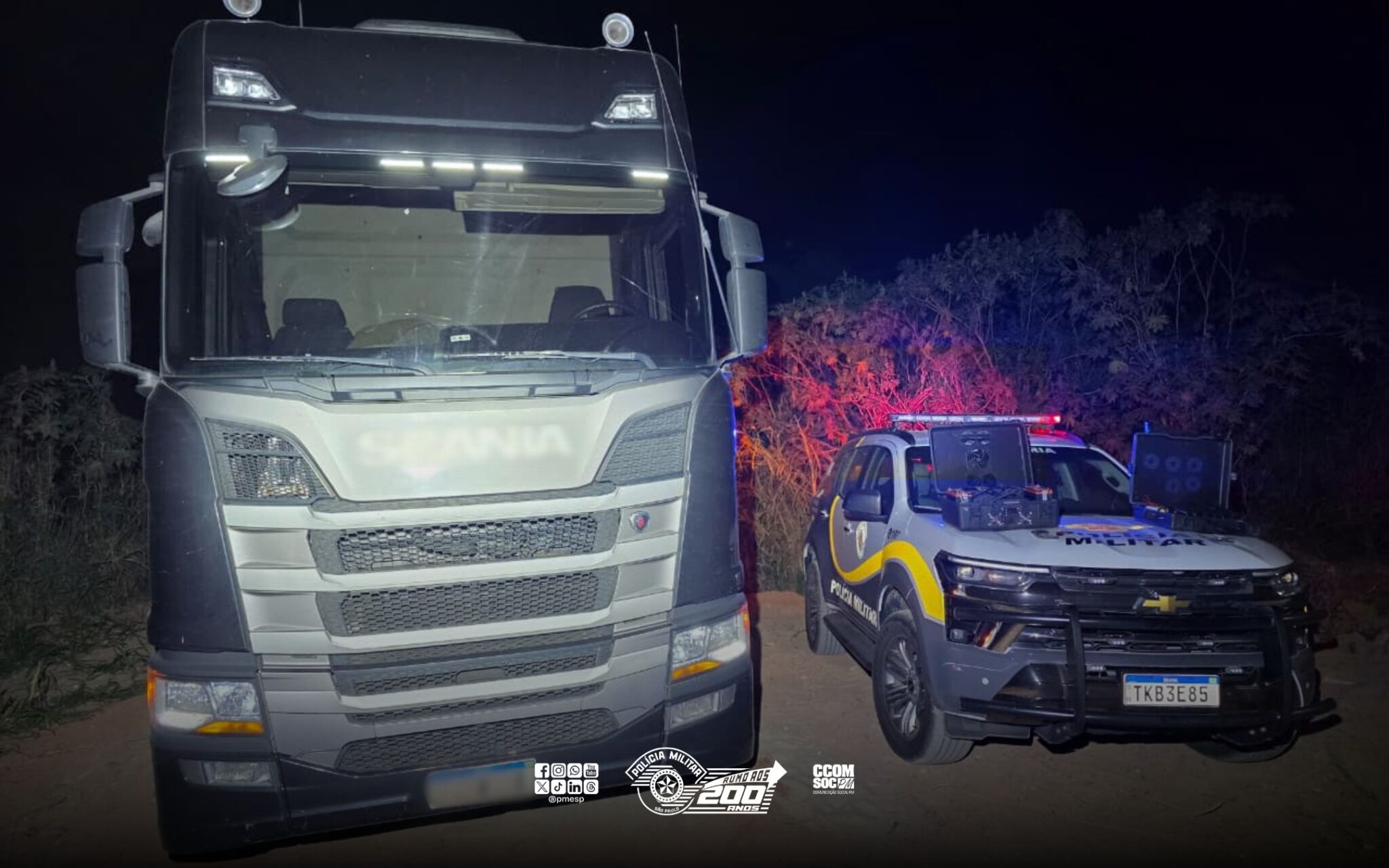 Polícia Militar Rodoviária recupera caminhão roubado após perseguição em Itatiba
