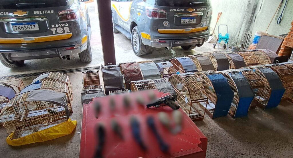 Durante a abordagem ao veículo suspeito, os policiais localizaram uma réplica de arma de fogo. As investigações levaram ainda a um imóvel utilizado pelos criminosos para manter as aves roubadas. No local, foram encontrados diversos pássaros silvestres — alguns com anilhas de identificação e outros sem qualquer registro. O valor estimado das aves chega a R$ 280 mil.