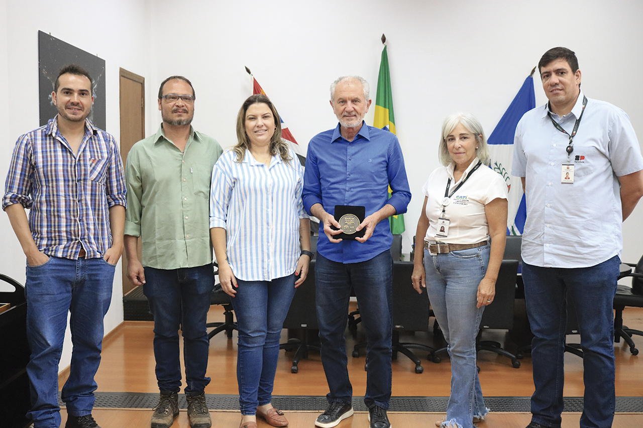 O prefeito Mario Botion e a secretária de Meio Ambiente e Agricultura, Simone Zambuzi, receberam nesta sexta-feira (20), dirigentes da Coordenadoria de Assistência Técnica Integral (CATI), vinculada ao Governo Estadual. Na ocasião, o prefeito recebeu oficialmente a medalha do Ranking Município Agro – Limeira ficou na primeira colocação da categoria 1 do programa do Estado.