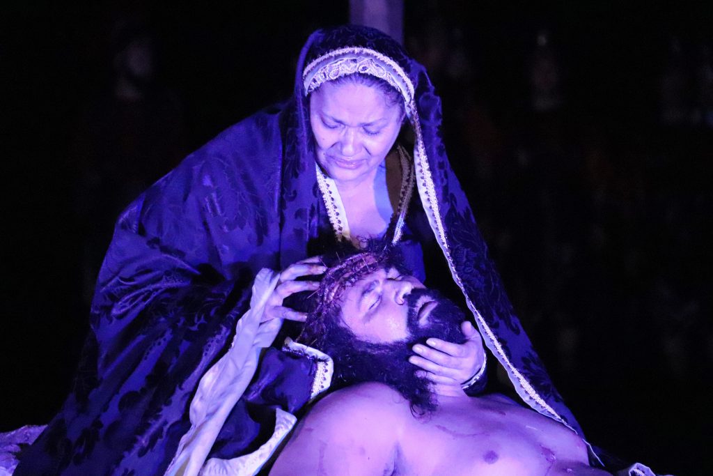 Na sequência, ocorre a Via Crucis, com a peregrinação pelas ruas do bairro, mostrando outros momentos importantes de sua trajetória de vida, que vão desde o instante em que Jesus recebe a cruz para carregar em direção ao Calvário até o seu sepultamento e ressurreição. Ao todo, cerca de 120 pessoas participarão de toda produção do espetáculo.