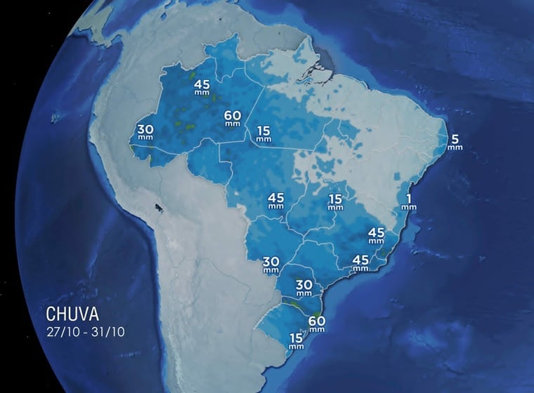 A última semana de outubro de 2025 deve registrar aumento das condições para chuva no Sudeste do Brasil, segundo dados da Climatempo. A passagem de frentes frias pela costa, combinada com a circulação de ventos em diferentes níveis da atmosfera, favorece a distribuição de ar úmido e a formação de áreas de instabilidade, provocando chuva frequente e muitas nuvens até o final do mês.