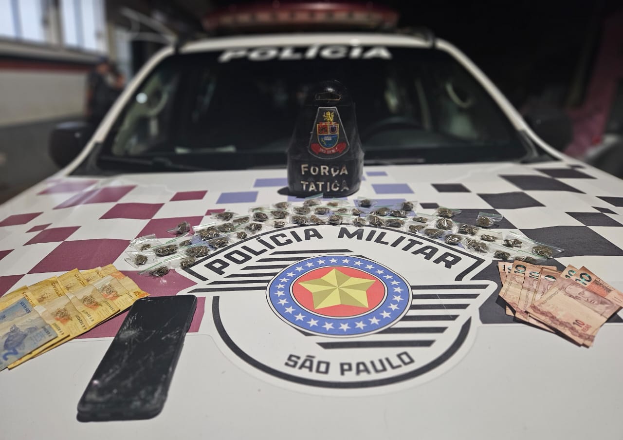 Homem foi flagrado pela Força Tática com drogas, dinheiro e celular usado para abastecer ponto de venda