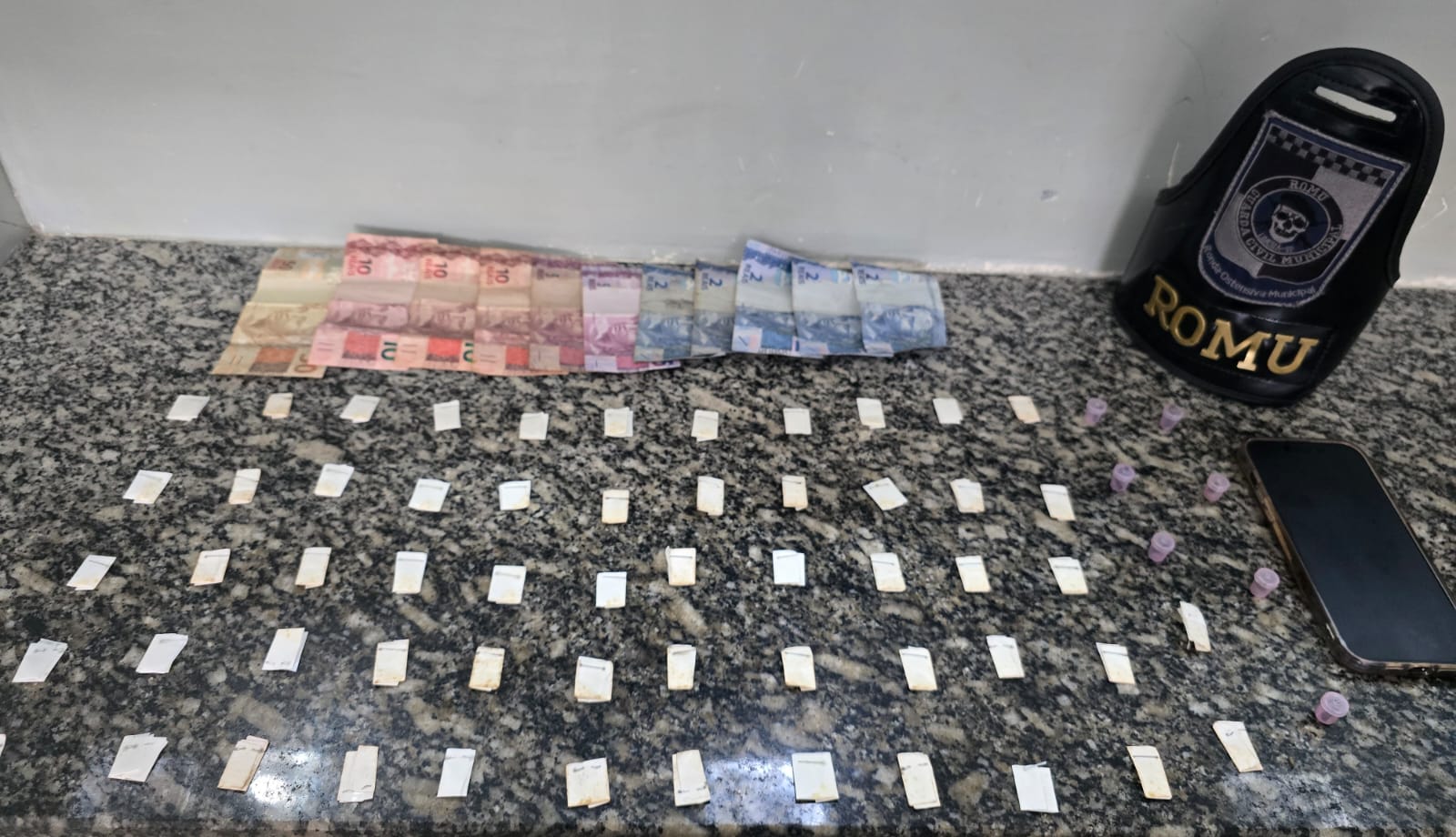 Durante a abordagem, foram localizados R$ 100 em diversas notas, 57 porções de uma substância conhecida popularmente como “meleca”, derivada de THC, sete microtubos de ICE e um aparelho celular iPhone. Segundo a GCM, o suspeito assumiu a propriedade dos entorpecentes.