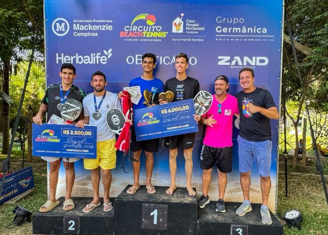 Foram definidos, neste domingo, os campeões da 7ª etapa do Circuito Beach Tennis realizada no CT Lucas Sousa, em Campinas (SP). O evento teve transmissão do PlayBT no Youtube e contou com cerca de 600 atletas e com parte da renda sendo revertida para a Casa Ronald McDonald da cidade, que cuida de crianças com câncer e anomalias craniofaciais e suas famílias oferecendo um ambiente de solidariedade e esperança.