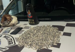 Ao todo, foram apreendidos: 830 eppendorfs de cocaína, 116 porções de maconha, 22 porções de dorga sintética (dry), R$ 390,00 em dinheiro e dois aparelhos celulares, modelos Infinix Hot 40i e Motorola Moto E7.